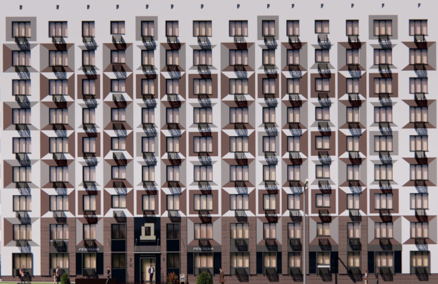 Здание оформлено в стиле современного городского лофта, с акцентом на оригинальные архитектурные элементы и ультрасовременный дизайн внутренних пространств. Использованы дорогие материалы высокого качества.